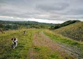 5. After a short distance turn left onto a footpath, just prior to reaching a signboard on your left that reads ‘Calverton Colliery Tip’. Pass the ‘Calverton’ signboard on your right to continue along the footpath going uphill. After a short distance the footpath widens to a track then, near the top of the hill, pass through a open wooden gate. At the top of the hill you will reach a T junction of tracks. Turn right along the track going gently downhill, with views to your right.
