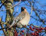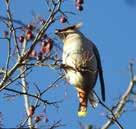 The waxwing exhibits what we describe as ‘irruptive’ behaviour, as every few years huge numbers migrate south and west from northern Europe into Great Britain. Breeding in loose colonies, they produce young late in the season, so these hatch to coincide with abundant summer fruits. As they search the local countryside for berries and other fruit, in most years waxwings do not travel over long distances but form large flocks that quickly strip trees and bushes of berries. Waxwings also eat sap, buds, flowers, and insects they catch on the ground or in mid-air. However, there is a complication which will be familiar to gardeners, in that the fruit trees cycle good fruiting years with bad. If the Scandinavian fruit crop is good, then the birds do well and so we see relatively few over here. Also, in a good