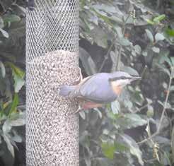 century, reaching Scotland to breed for the first time in 1989. Almost all Nuthatches are very sedentary, rarely moving far from where they hatched, often travelling is less than one kilometre. Consequently, they are still absent from Ireland, and from studies where birds are caught by netting and carefully recorded and ‘ringed’, no British-ringed Nuthatches have ever been recovered abroad. Similarly, no Continental-ringed birds have been found in England. Populations vary from yearto-year, which probably reflects food availability during the winter. Of course, this is why garden feeders are so significant, so keep up the good work as the Nut Hacker depends on your efforts!