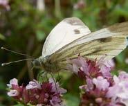 Flower irresistible. Both these species are on the wing in the early season, the Orange-tip overwintering as a chrysalis or pupa for many months, and the Greenveined similarly but from about September through to April.