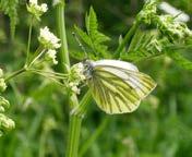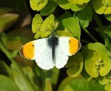 In the wildlife garden, early flowers give way to spring blooms and with them come a range of the vernal butterflies, some of the most striking being splendidly, bright sulphurous Brimstones and dramatically marked Peacocks. However, there are other species of the early season garden, and many are frequently overlooked. The Green-veined White is a cousin of the Large White and the Small White, (the so-called ‘Cabbage Whites’), but is altogether prettier and more delicate, the underside of the hind wings showing a distinctively green patterning along the veins. This is drawn by flowers such as the wild Hedge Garlic of woodland edge and hedgerow (a competitive and pernicious weed if introduced to the garden!), and to old-fashioned cottage garden flowers like Honesty and Dame’s Violet. These are favoured plants for the related Orange-tip which is an even prettier species than the Green-veined, and on damp meadows, pond-sides, or even unmown lawns, will find Lady’s Smock or Cuckoo