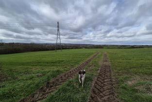 7. At the end of the lane turn left along another lane. After some distance, and just prior to reaching an electricity pylon, bear sharp right. After a very short distance turn sharp left to cross a field, with the hedge on your left.