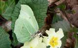 With a few weeks of warmer, sunnier weather the early butterflies are out and about. Some of the earliest species to emerge are the pretty Small Tortoiseshell, and the splendid Peacock, and these can be seen on warm days in late February and early March. However, another quite stunning butterfly is the appropriately named Brimstone, the male being a bright sulphur yellow. This species, the Brimstone (Gonepteryx rhamni) is a brilliantly-coloured butterfly seen in local gardens, along woodland edges, on old country lanes, and in or around parklands. This large, quite stunning species tends to be spotted on warm, early spring days when they emerge from their winter hibernation. Regarded as one of the heralds of springtime, this species appears to be increasing, perhaps with climate warming. This rather spectacular butterfly, which is actually a member of the ‘White’ butterflies, is also an early species, already out and about in February and March this year. The Brimstone has two broods with the first being early emergent adults that overwintered, and then a second in summer through until around September.