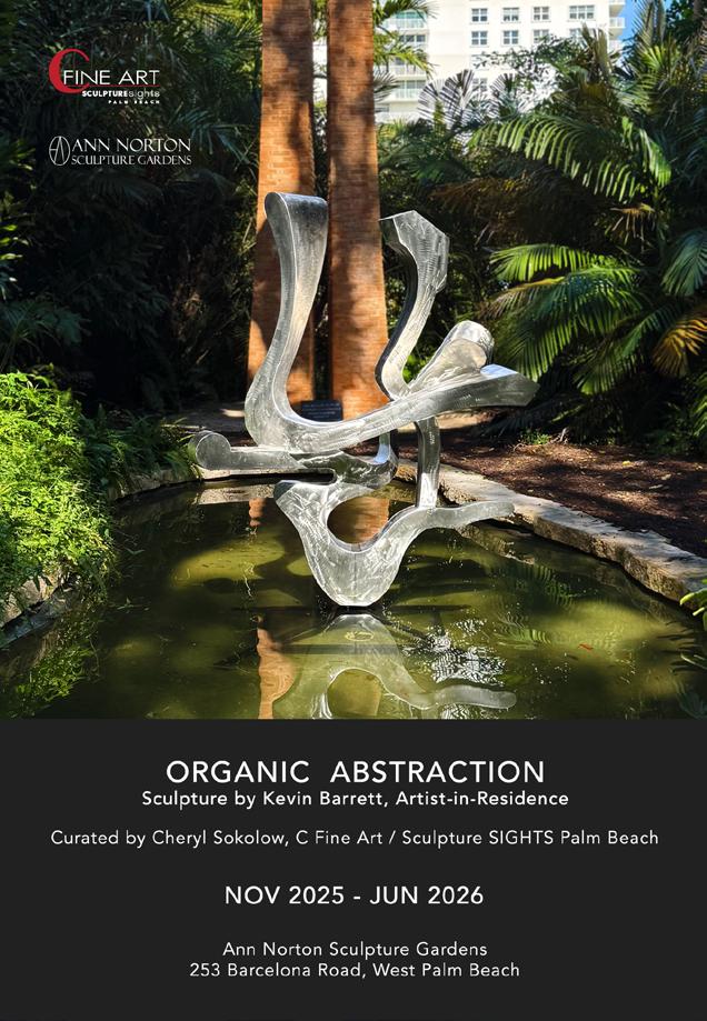 PBM+C VIP Preview Beneficiary, Ann Norton Sculpture Gardens, will once again serve as a satellite venue for the fair and will showcase an exciting exhibition by 2026 Artist in Residence Kevin Barrett, Organic Abstractions, curated by PBM+C Exhibitor, Cheryl Sokolow of C Fine Art. The selected works underscore the artist’s expansive range of scale, process, and aesthetic across a variety of fabricated materials including bronze, stainless steel, and aluminum. ansg.org