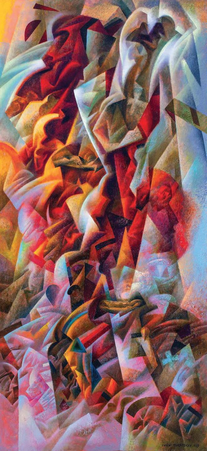 A distinct par t of Ivan Turetskyy ’s painting is his expressive thrilling literally perceptible to one ’ s ear, musicality. Music here is more than a source of emotional inspiration. Ivan Turetskyy is attentively seeking rhythmic self-wor th in ever y painting (as in his work