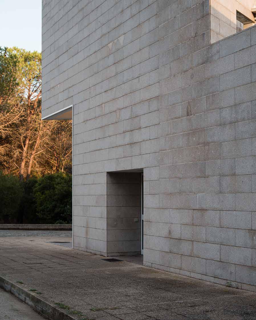 Manca una mezza pietra nel rivestimento dell’edificio 0, e mi piacerebbe vedere un rattoppo che ne salvi la compiutezza, come quelli sui mosaici o sui muri delle rovine romane di Nora. Le analogie continuano tra le macchie scure dell’acqua sulla cima delle colonne senza capitello e quelle sulle torrette bianche di Gregotti, che snobbò la possibilità di una scossalina.