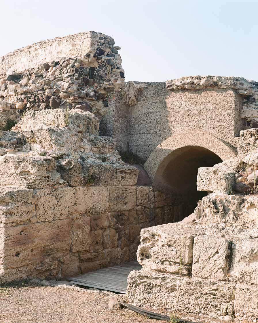 Dopo il Polaris, vado a Nora. E in questo viaggio in posti in cui sono stata miriadi di volte e in tutte le stagioni, sembra che Pula non esista. Non esistono i turisti che l’hanno visitata in massa nella scorsa stagione, quei corpi che le statistiche chiamano “600mila presenze turistiche”. Né le seconde case le cui fondazioni ne solcano il suolo irreversibilmente e sono soggetti imbellettati nei siti di affitti: bifamiliare con spettacolare vista mare, gradevole appartamento in palazzina in centro, villa con internet veloce e griglia. Esistono invece i luoghi immaginati e immaginabili delle sue rovine antiche e delle quasi-rovine contemporanee, e quelli necessari alla nostra futura sopravvivenza: gli abitacoli dei forestali e la montagna depilata per fermare gli incendi delle estati a 40 e passa gradi – che si mescolano al terreno sabbioso.