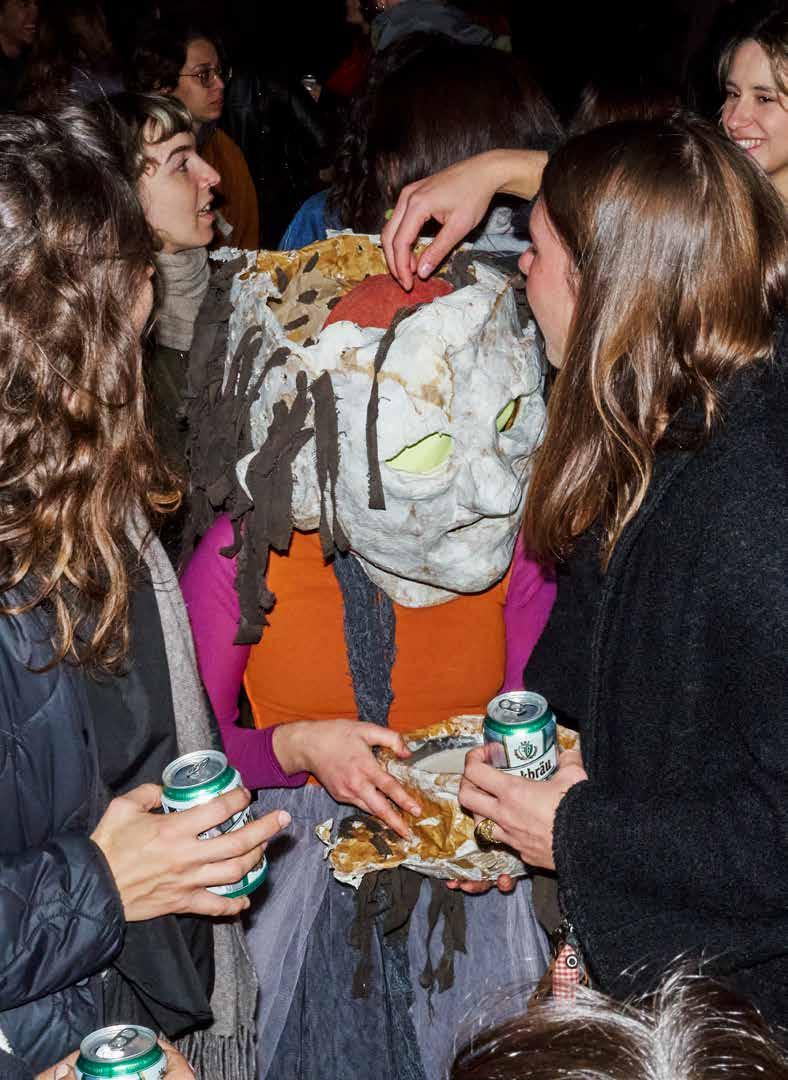 Ho l’impressione che la tua pratica rivendichi una certa provvisorietà, quasi fosse la contingenza a determinare gli esiti delle opere, in particolare quelle performative. A proposito di queste ultime, sono curioso di sapere se il tuo processo prevede prove. Gran parte del processo di preparazione è dedicato agli oggetti di scena (maschere, invenzioni, strutture, macchine, costumi…) che spesso sono anche i protagonisti dell’azione. Questa fase richiede una grande quantità di tempo ed energie da impiegare in diversi tipi di lavorazione, dalla cartapesta alla saldatura, partendo quasi sempre da materiali di scarto. Raramente provo per intero le performance, ma mi alleno molto a livello immaginativo: ne ripercorro mentalmente struttura, tempistiche e spostamenti, in modo ripetuto, quasi mantrico e con quanti più dettagli possibile, basandomi sullo studio preventivo dello spazio e del contesto. Lo svolgimento effettivo delle mie performance però è difficile da anticipare, essendo molto influenzato dal comportamento del pubblico e da al-