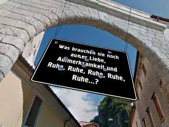 Gli appelli di pace non sono ancora abbastanza efficaci, la guerra fa parte della natura umana e trasforma i luoghi continuando a esistere e a stravolgere il mondo. Il cartello affisso mostra un messaggio che è l’opera stessa, rappresentando il tragico dualismo insito nell’uomo: invocare la pace passando attraverso l’orgoglio dei conflitti e degli eroi. L’opera è un segnale stradale in alluminio, installato in città sotto un arco, alla vista dei passanti. Su entrambi i lati vi è la stessa iscrizione, una in italiano l’altra in tedesco. Il cartello, trapassato dai proiettili, chiede al pubblico di cos’altro ci sia bisogno oltre l’amore, l’attenzione e la tranquillità.