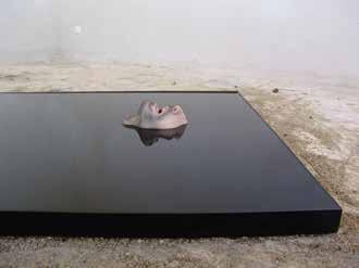Scompare, in una sottile pozza nera che realmente non potrebbe contenerla, imprigionata dal consumismo contemporaneo, quell’insignificante creatura annaspante che nella Storia vede solo il susseguirsi dei giorni: l’uomo. E sembra la punizione di chi non vede la pace, quella di cadere in questo Limbo di petrolio. Una grande vasca ricolma di oro nero sembra contenere il corpo di un uomo, ma nello spessore di soli 5 cm è impossibile che si celi veramente un corpo umano. Il viso dell’uomo affiora dalla distesa nera di petrolio che a prima vista sembra solido, ma dal punto di vista fisico è liquido. 50 litri del prezioso liquido imprigionano l’essere umano e al tempo stesso alludono al reale pericolo che la prevaricazione dell’individuo sull’altro ha sempre rappresentato.