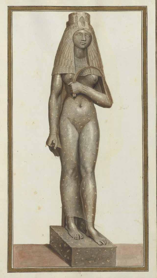 Another group of five Egyptian statues, found at the ancient Roman estate of Horti Sallustiani and now in the Gregorian Egyptian Museum, were restored by Francesco Maratti Padovano (c. 16691719) for Pope Clement XI at the start of the 18th century. Maratti crafted new pieces to replace missing sections of the statues, including a new nose and chin for a statue of Queen Tuya (Musei Vaticani, cat. 22678).