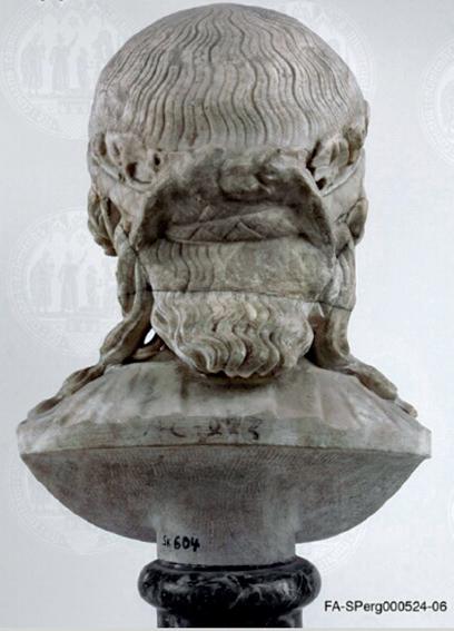 from the archaic period of the 6th century BC, especially the back of the head with its etched locks, identical to that of a bust currently preserved at the Altes Museum (ill. 1) and that of another from the Cavendish collection in Chatsworth (ill. 2).