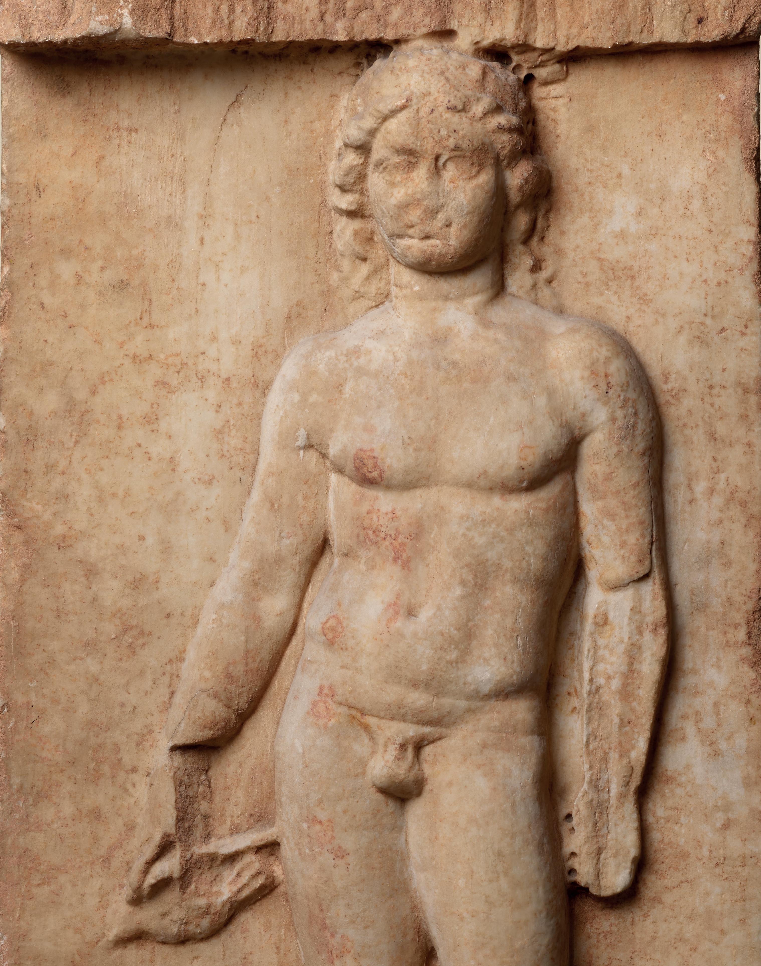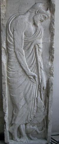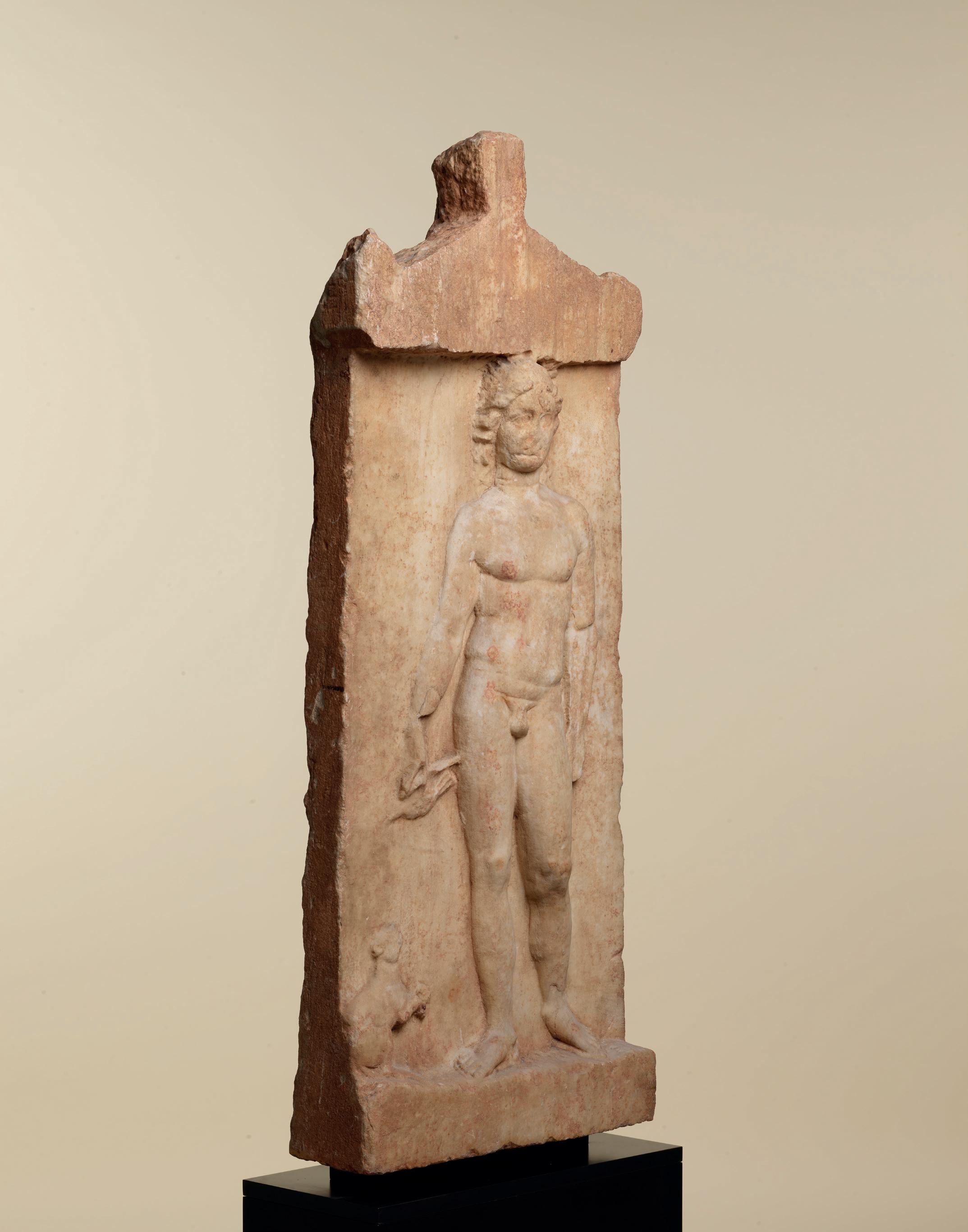 The fact the figure is set on a smooth base confirms that it once decorated an architectural or funerary monument. It was possibly part of a frieze adorning a public monument, sanctuary or some rich dwelling. The whole relief could have had a votive or commemorative function. The general attitude of the figure, the refinement of the sculptural work