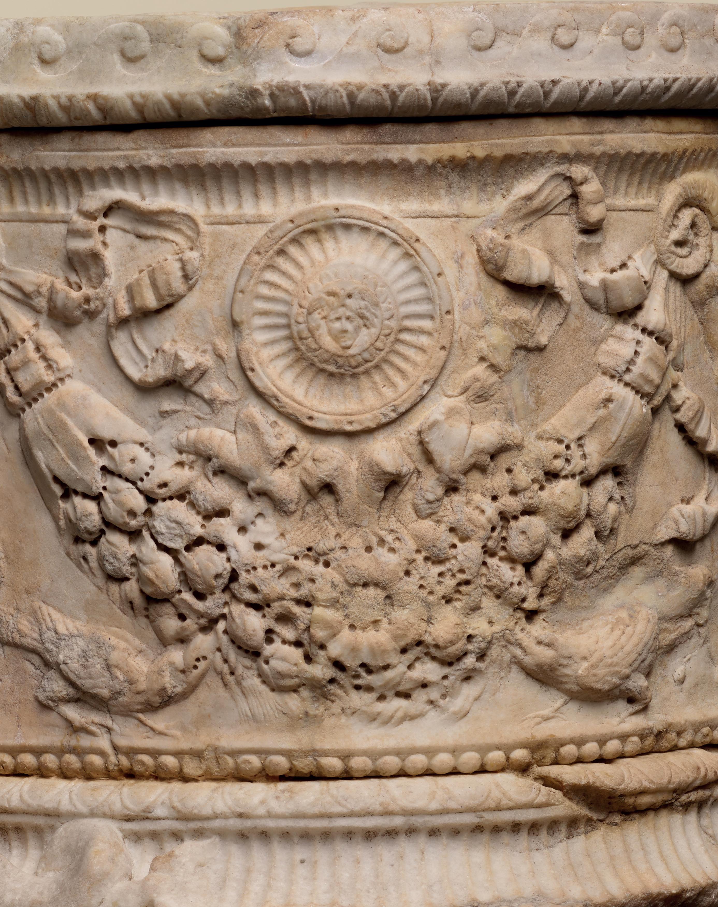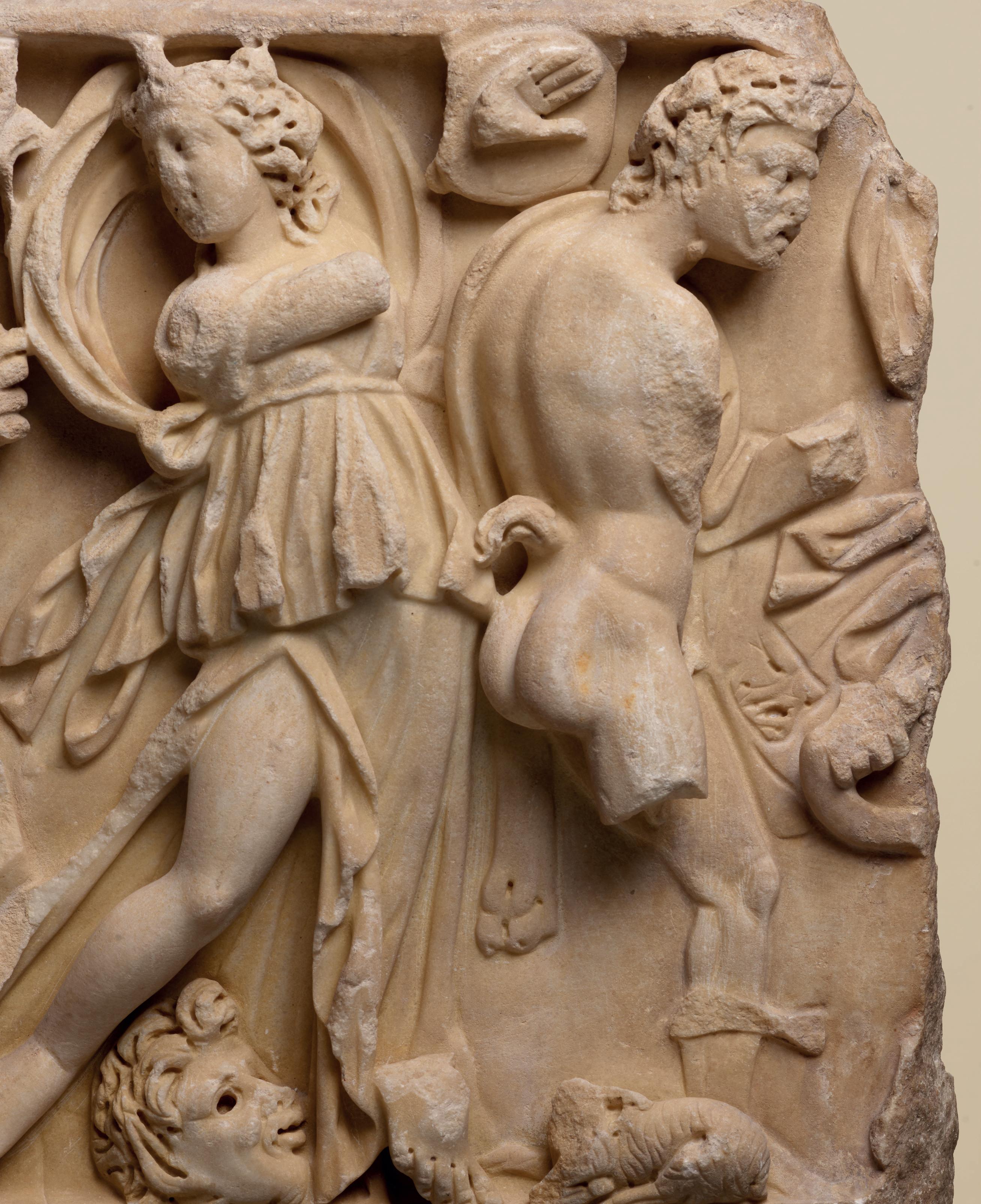 While this fragment once had a practical function – a ‘trapezophore’ is a table support – the quality of the sculpture recalls that these furniture details were also privileged mediums for the aesthetic expression of their owners. The way Cicero wrote about them in his correspondence, in the same way as he did statues and paintings, is an eloquent testament to the importance the sculptures held in aristocratic Roman interiors. The display function