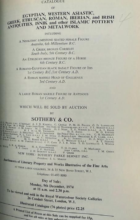 SOLD BY SOTHEBY’S LONDON “ANTIQUITIES”, 9 DECEMBER 1974 – LOT 1 81.