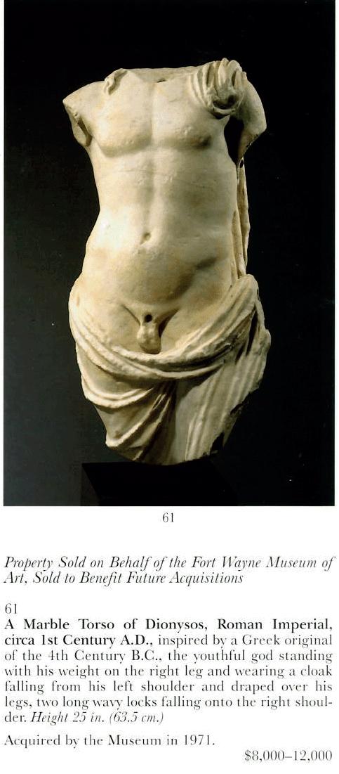 DEACCESSIONED BY THE FORT WAYNE MUSEUM OF ART IN 1996.