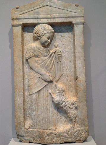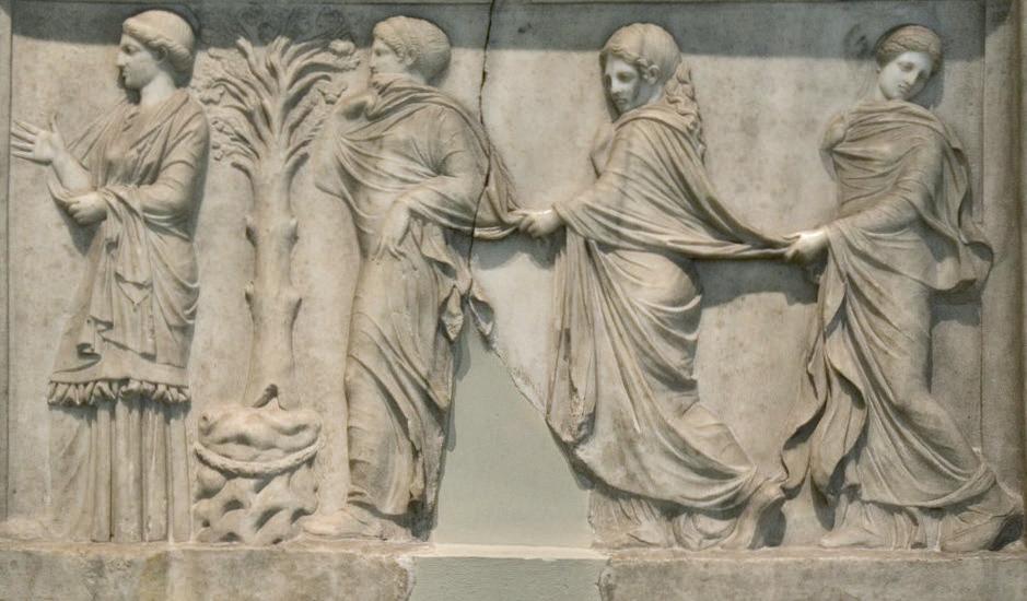 Ill. 1. Relief representing three nymphs in procession behind a woman, Greek, Archaeological Museum of Piraeus, Athens.