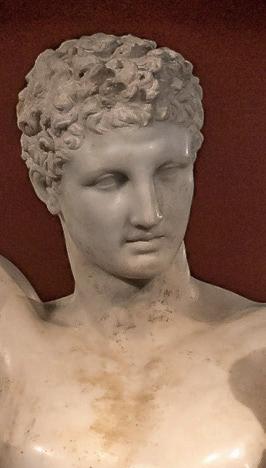 on the right buttock indicates the contraction of the muscle, a lifelike detail that reveals the sculptor’s mastery. The position of our torso, with the model’s hips canted up to his right, indicate that the sculpture follows the fundamental principle of contrapposto, inherited from Greek sculpture in the 5th century BC. The asymmetrical distribution of the weight of the body causes a subtle twist of the pelvis, giving the whole body a posture of animated ease wherein it forms an ‘S’.