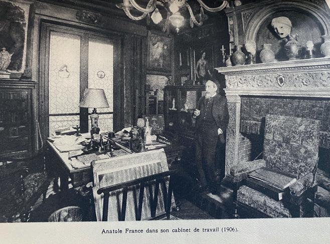 In some of them, he used characters and ancient settings as a way to reflect on the shift between the pagan and Christian worlds, particularly when he mentioned Greece or Rome in the lead up to the Christian era. The biography written by Léon Carias contains photographs of Anatole France in his study, surrounded by artworks. Our marble head can be seen “in the library, at La Béchellerie (1917)” (ill. 7).