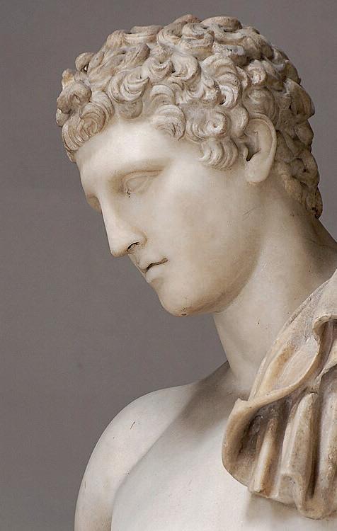 Our sculpture is completely in line with classical iconography, founded on an idealised representation of the human body that celebrated strength, beauty and physical mastery. This type of torso traditionally evokes athletes, certain gods and heroic figures from mythology. In the absence of specific attributes, it is plausible that this could be the representation of an athlete. Adopting the proportional canons established by Polykleitos, the work directly draws on the heritage of classical Greek art, the models of which established the principles for a balanced, harmonious representation of the body and its shapes. It displays the anatomical precision and subtle contrapposto characteristic of sculptures inspired by Polykleitos. By its sculpting and shapes, the torso is particularly similar to the Diadoumenos (ill. 2) and Doryphoros (ill. 3), two of Polykleitos’ emblematic creations. The Diadoumenos distinguishes itself by softer shapes, while the Doryphoros exhibits firmer muscles, without ever falling into exaggeration. Our work dates to the 1st and 2nd centuries AD. In that period, sculptures adorned public spaces such as temples, fora and