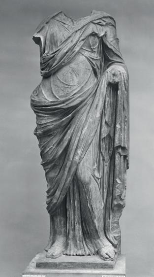 However, the different treatment of the chiton and the himation is more reminiscent of the statue at the British Museum (ill. 3), or that at the Metropolitan Museum of Art (ill. 4), while the striding motion is similar to that of the Artemis Colonna at the Altes Museum (ill. 5). Our fragment also resembles a bust preserved at the Museo Gregoriano Profano (ill. 6).