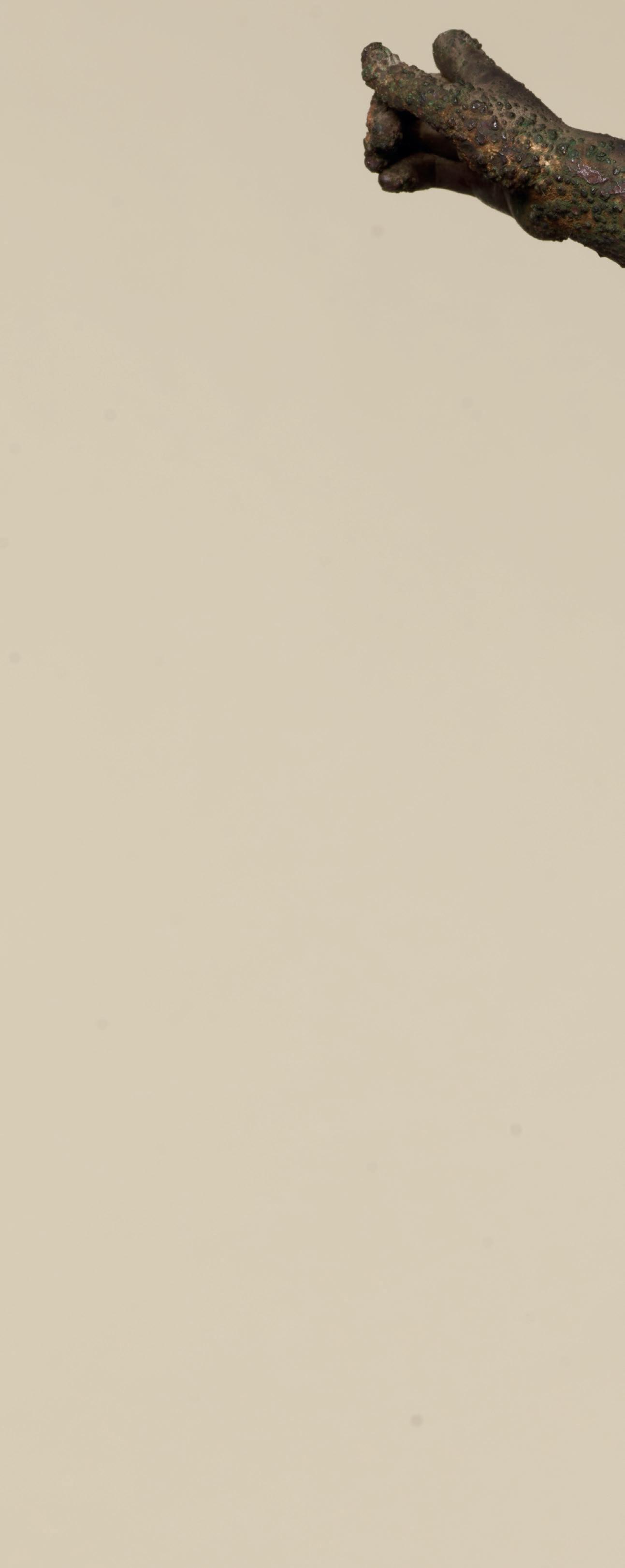 Nevertheless, the joint of the right shoulder on our torso, which is slightly lowered, indicates that the arm was probably not raised above the head, as in the representations listed above. It must have been