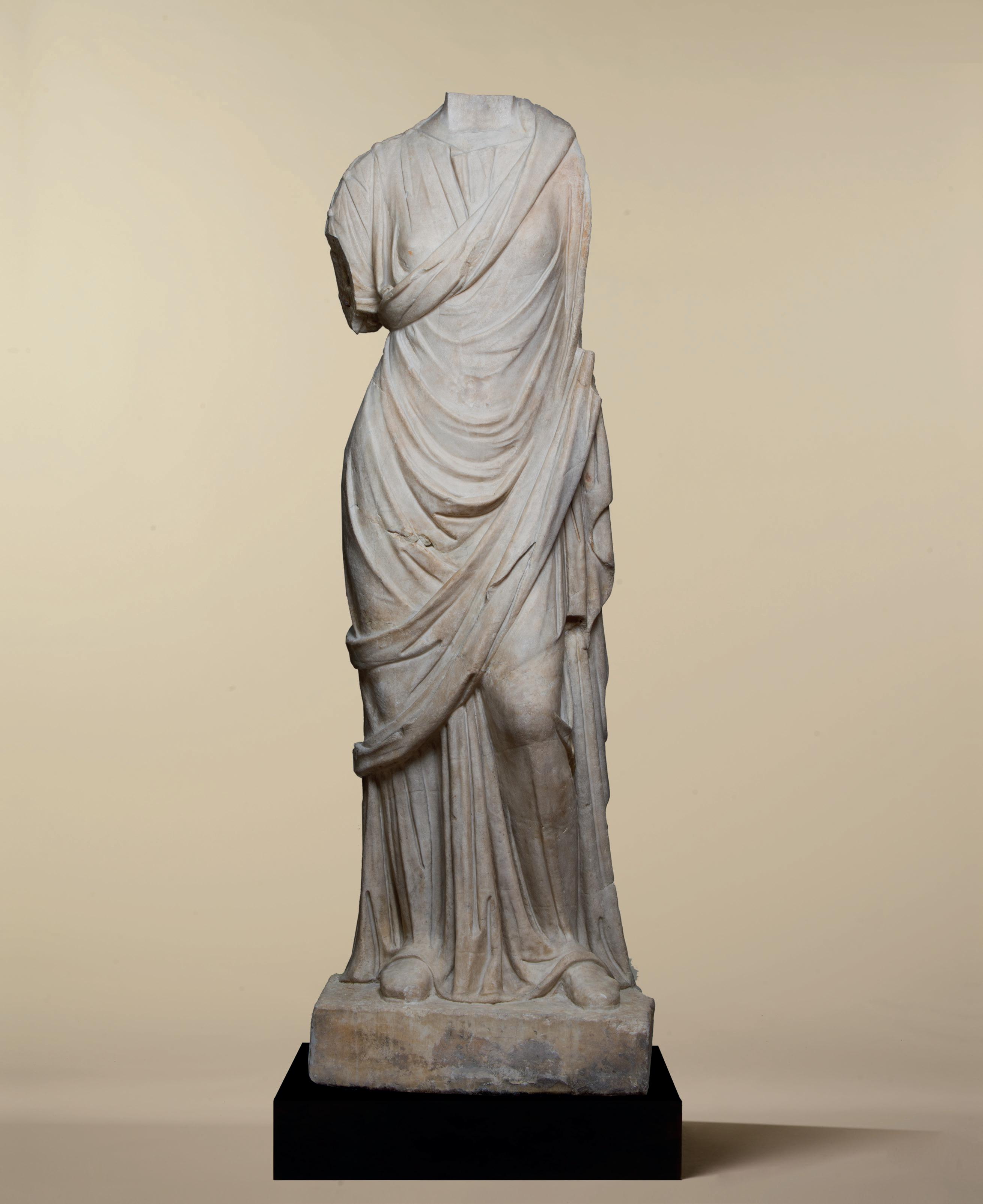 suggests a common origin and confirms the artistic importance of this sculptural ensemble. This type of representation, which combines movement, bodily harmony and textile richness, perfectly illustrates the Roman aesthetic inspired by the classical Greek ideal.