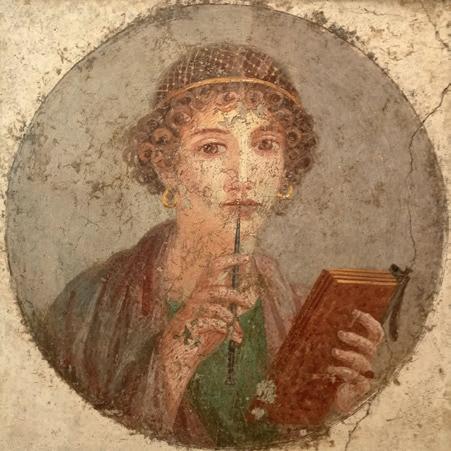 Ill. 5. Woman with wax tablets and stylus, Roman, AD 55–79, Pompeii, fresco on gesso, H.: 37 cm.