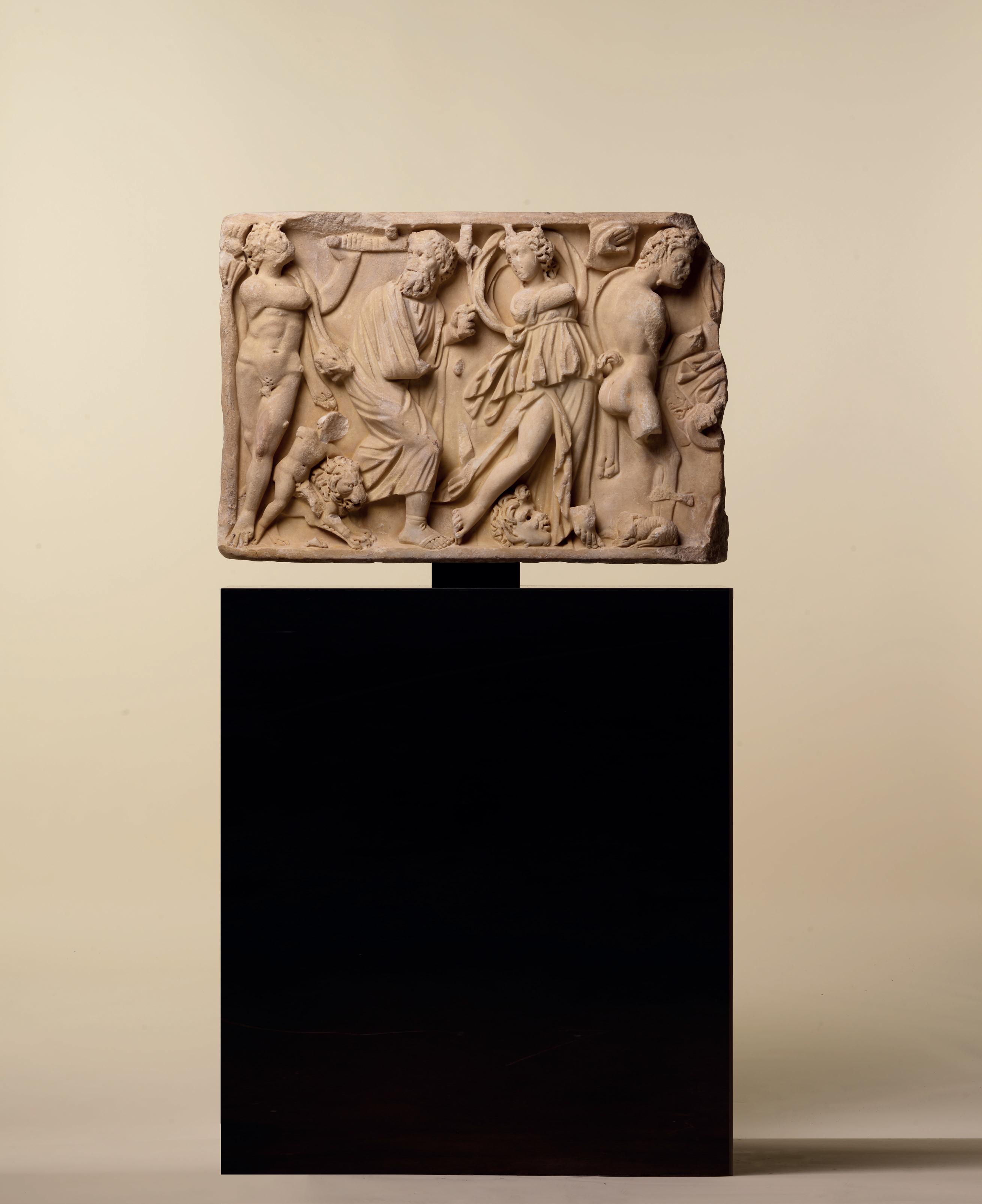 This fragment of a relief, with its delicate patina, is a precious testament to ancient sculptors’ skill in conveying movement, elegance and symbolism through idealised female figures.