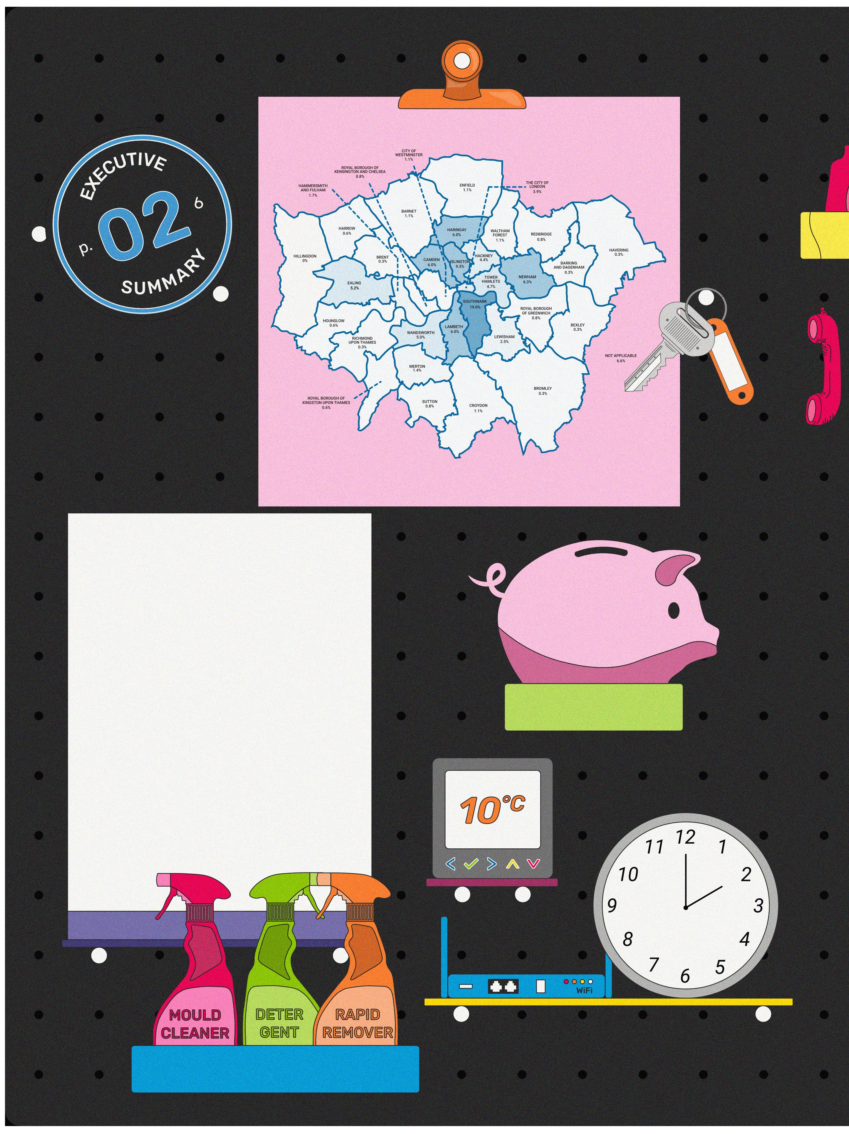 • 24.7% reported mould, 24.1% draughty windows/doors, and 15.5% infestations.