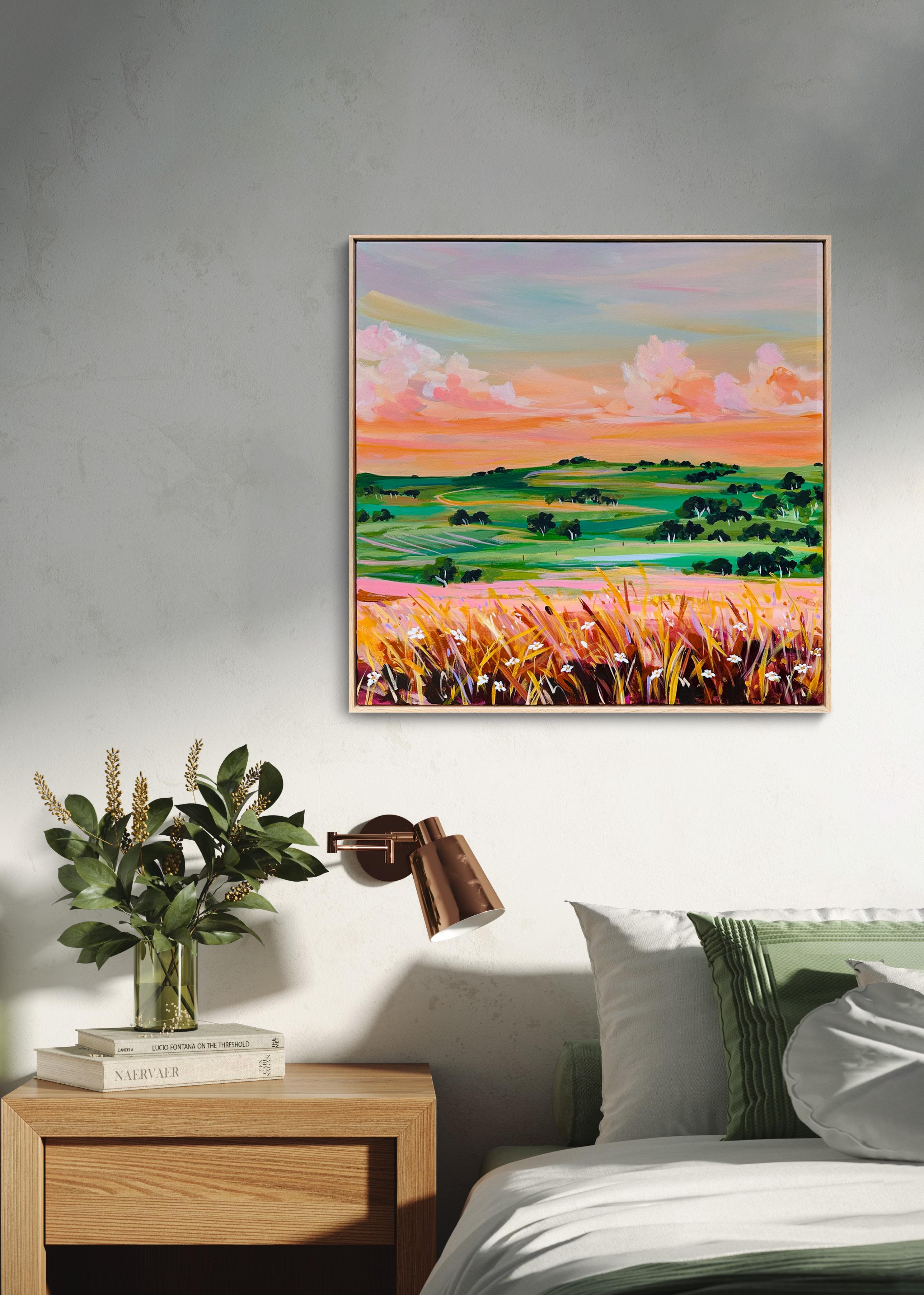 BM_02 ‘The Valley Close to Home’ 92 x 122 Acrylic on canvas, raw oak frame $3,285