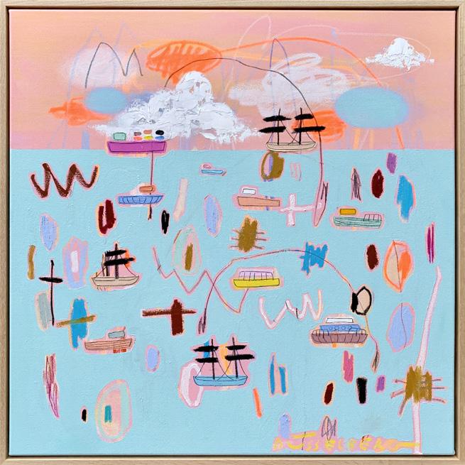 ‘Evermore’ 33 x 33 Acrylic on canvas, raw oak frame $490 HB_07 ‘Drifting Back’ 33 x 33 Acrylic on canvas, raw oak frame $490
