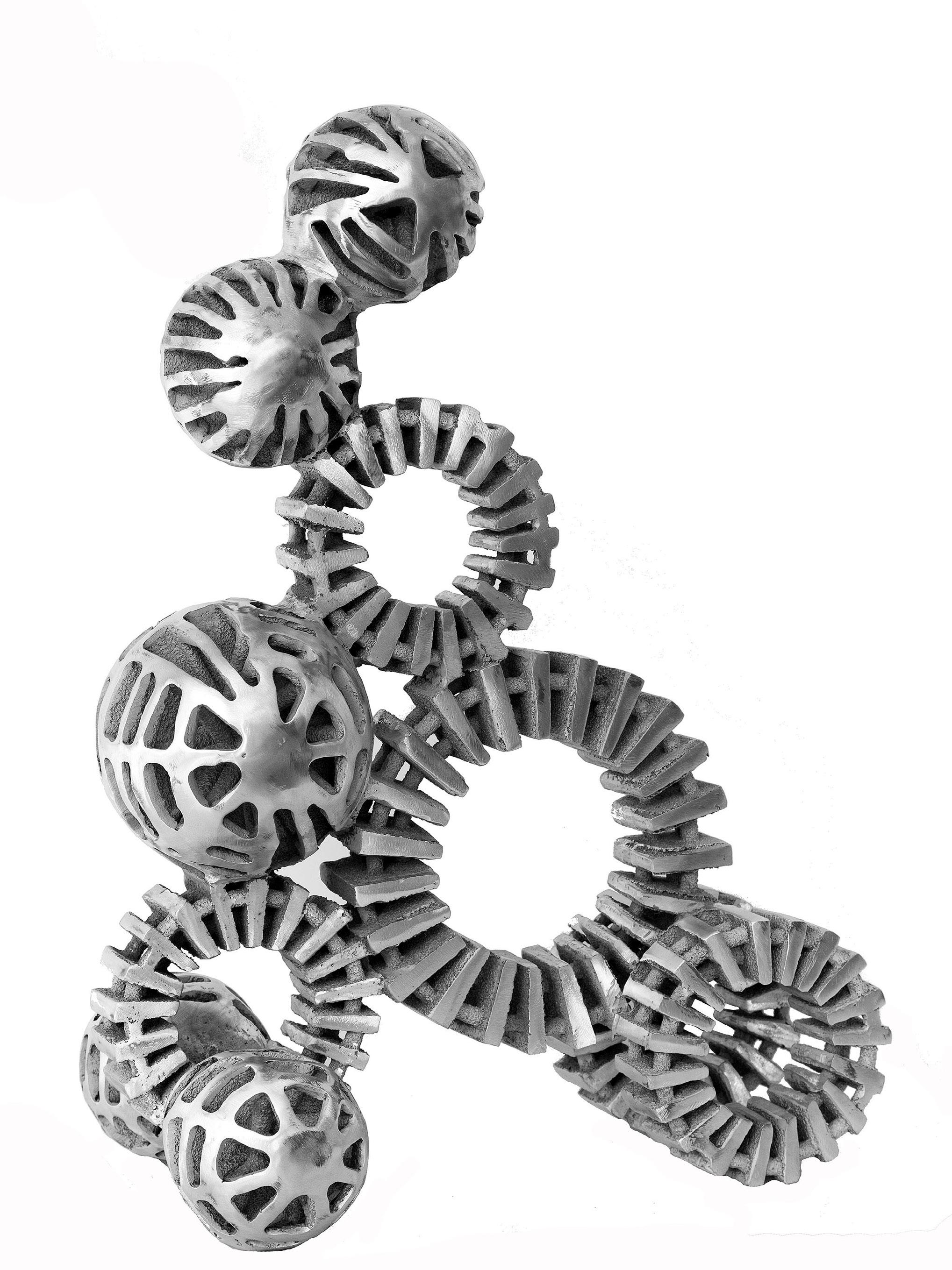 the furan resin burns. This means that the casting results are exclusively unique. Repeat castings are not possible. Since this so-called negative molding and casting process requires negative thinking, it is obviously difficult to use. However, as a mathematician, I have no problems with this. This shows how useful and successful a combination of artistic ideas, mathematical thinking, and craftsmanship can be. I have greatly developed the Benno Werth method and its applications. I have been exhibiting my own work since the end of 2014."
