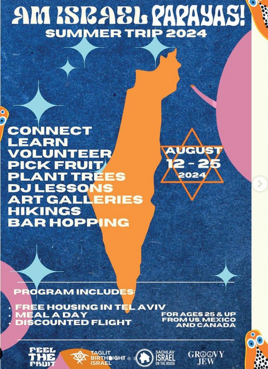 Spend two weeks in Israel on a summer trip organized by artist Alejandro Glatt in collaboration with Sachlav Israel and Taglit-Birthright Israel.