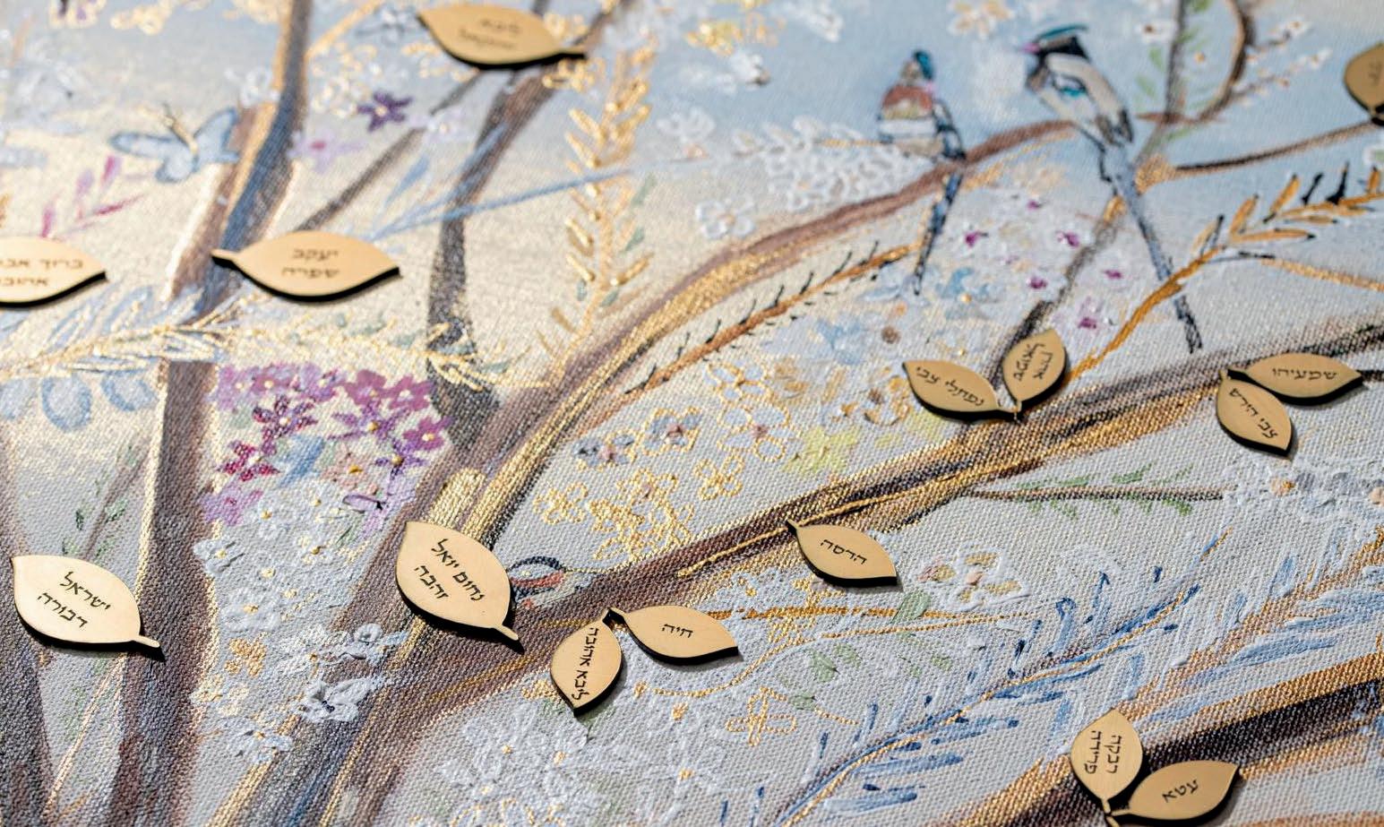 and positive energy. In my process, I do like to switch things up. I use variation of colors, I add gold leaf, recently I have been adding real jewels to my family trees.