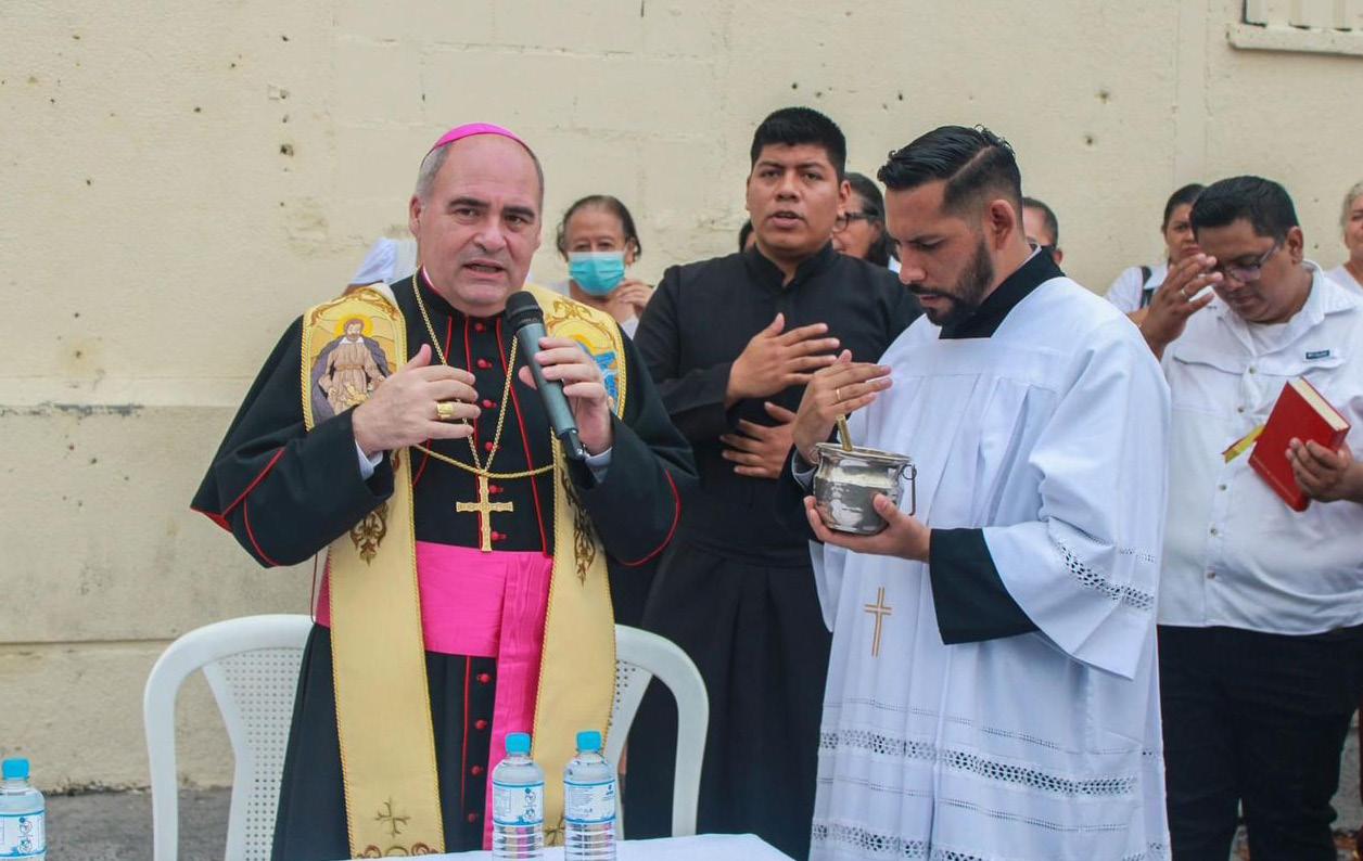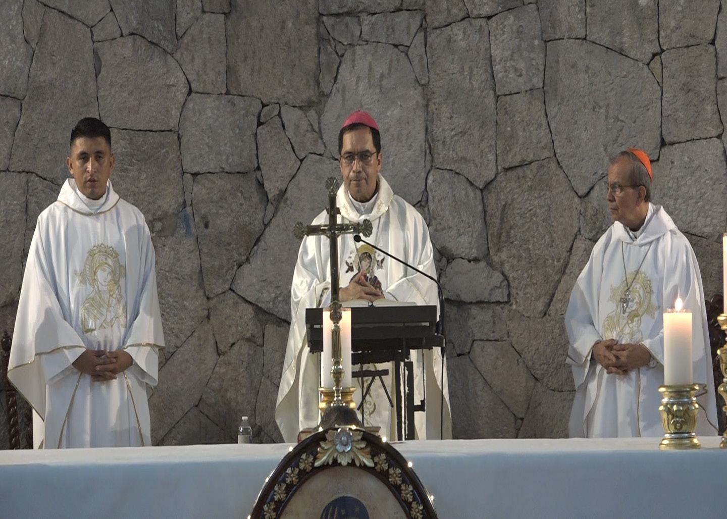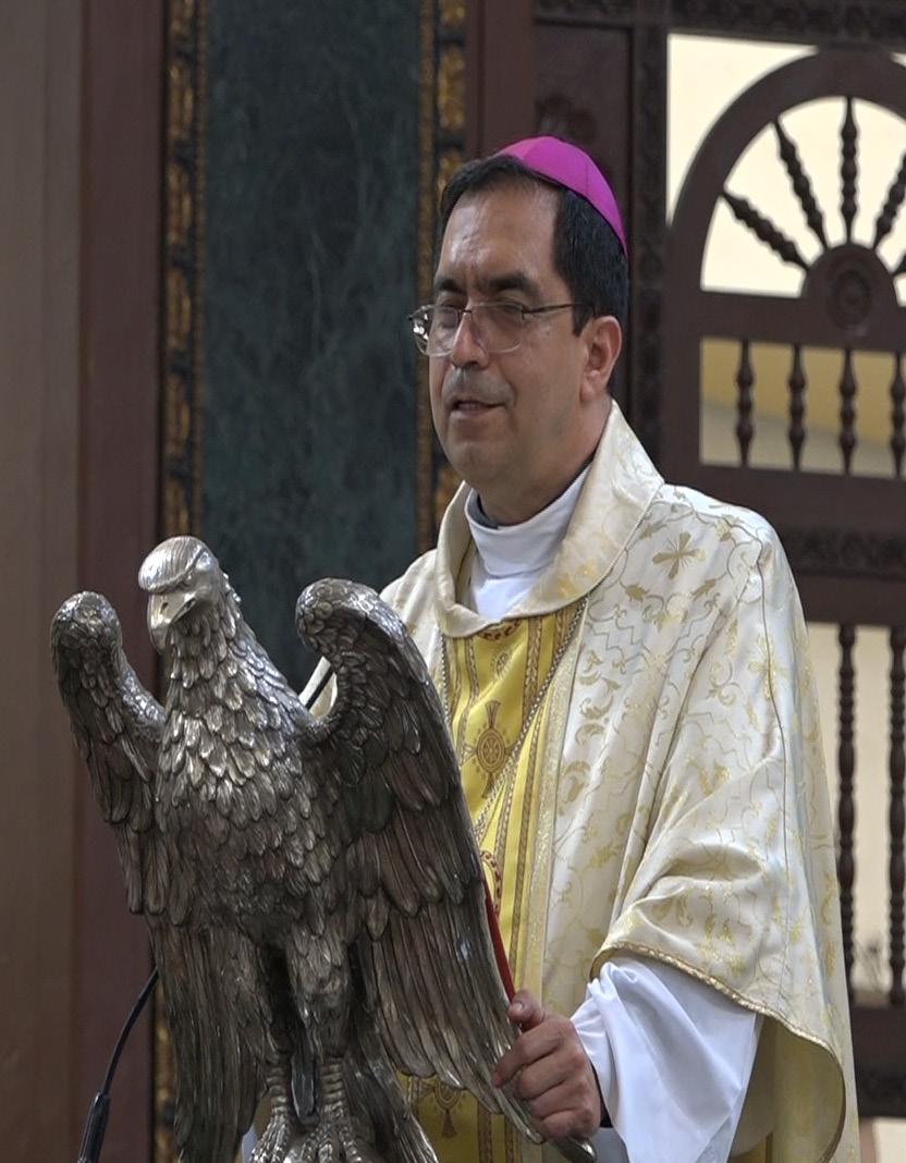 “El señor nos ha dado esta linda imagen de la Santísima Virgen del Rosario patrona de esta diócesis, como todos sabemos, se quemó... Además de eso, también se han pintado al óleo esas bellísimas imágenes de San Óscar Romero y nuestra Señora de la Paz, patrona del Salvador. Además, tenemos al óleo también las imágenes de Nuestros Mártires, pero todo el templo se ha pintado, se ha iluminado y sin duda, lo más bello el monumento que nos preside, donde está el Sagrario, ya pudimos colocarlo al centro del templo como un monumento bellísimo... Damos gracias a Dios por tantas cosas que se han hecho en el templo de Catedral y en la pastoral de esta iglesia...”