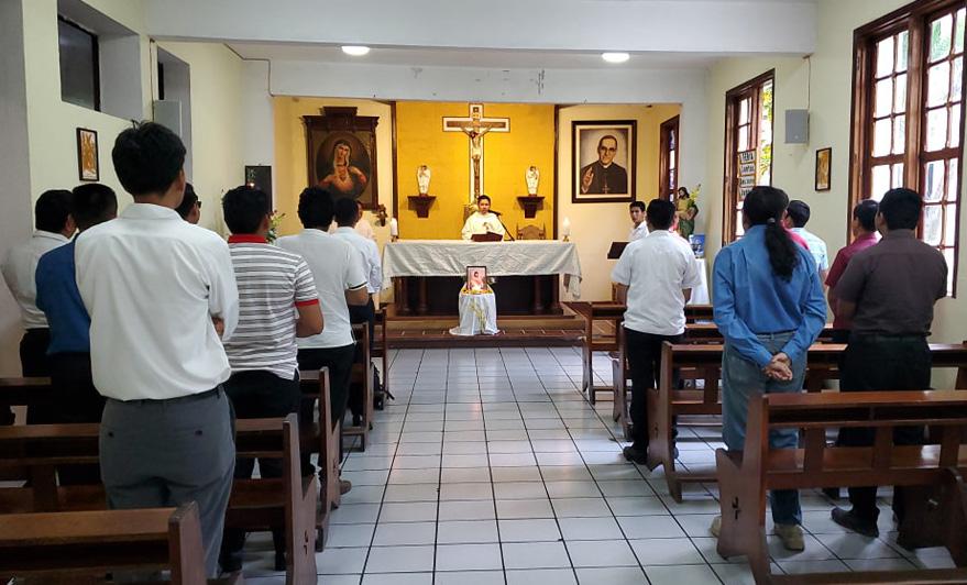 Como las convivencias antes vividas abrimos nuestras puertas a eso de las 6:30 de la mañana para empezar a recibir a los jóvenes que desde los departamentos de: San Salvador, La Libertad y Cuscatlán viajan a temprana hora para tener este encuentro. Iniciamos con pie derecho por medio la misa presidida por el Encargado Arquidiocesano de la Pastoral Vocacional presbítero Oscar Oviedo.