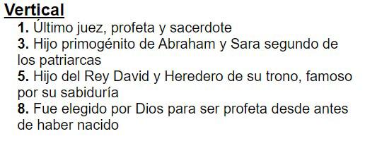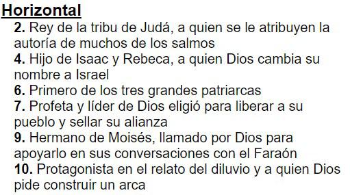 Crucigrama sobre personajes del antiguo testamento