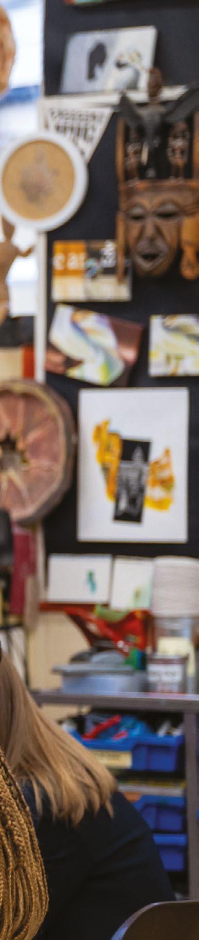 Our students’ experiences are enhanced by the access they have to the studios during evenings and at weekends and by visits to local, national and international galleries. In the Sixth Form art students benefit from having their own studio space to work in, which promotes independence and prepares students for further creative study. Our students have gone on to study across a diverse range of creative courses from Fashion to Architecture, Game Design to History of Art. Furthermore, Art provides a sound background for other less obvious careers where the ability to think differently and creatively gives an individual the edge on the competition.