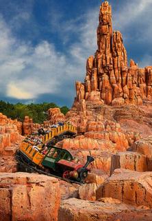 Big Thunder Mountain Railroad speeds you through a wild, goldmining adventure with sharp turns, sudden drops, and runaway train excitement Hold on this here’s the wildest ride in the wilderness!