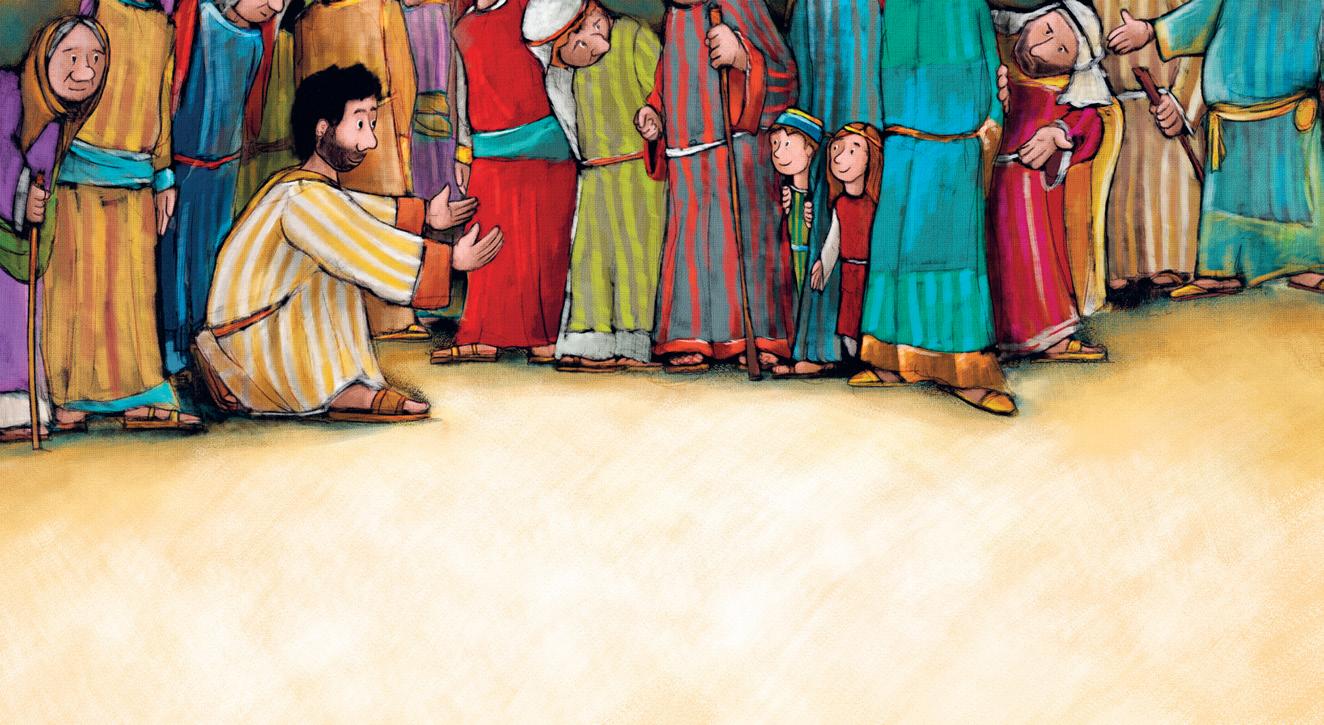 „Lasst die Kinder zu mir kommen“, rief einer streng. Seine Stimme klang verärgert. Ruth traute ihren Ohren nicht. Das war Jesus! Er schimpfte mit den Männern: „Steht doch den Kindern nicht im Weg!“, sagte er. „Hindert sie nicht daran, zu mir zu kommen. Für Gott sind sie wichtig!“