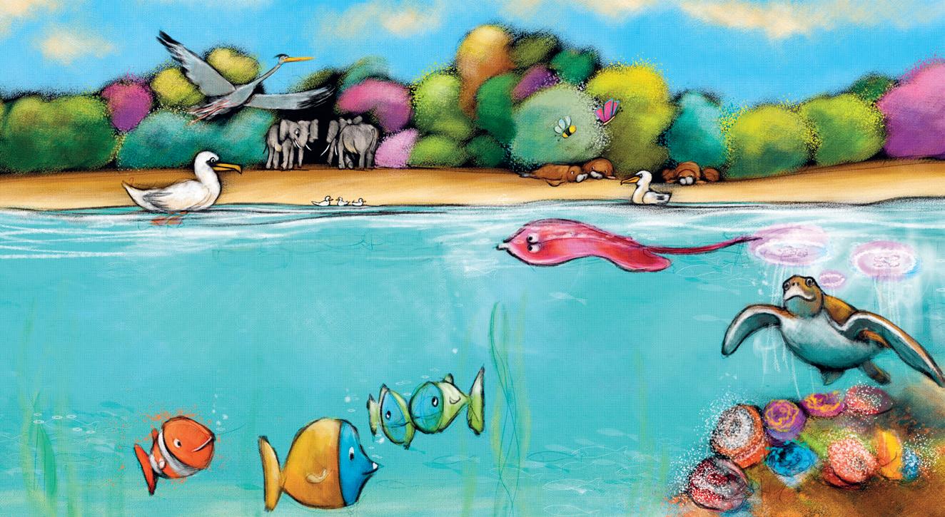 Sonne, Mond und die Sterne leuchten am Tag und in der Nacht. Die Jahreszeiten folgen einander. In den Meeren, Flüssen und Seen wimmelt es. Vielfältig sind die Tiere des Wassers. Die Zahl der bunten Fische, Muscheln und Korallen ist grenzenlos.