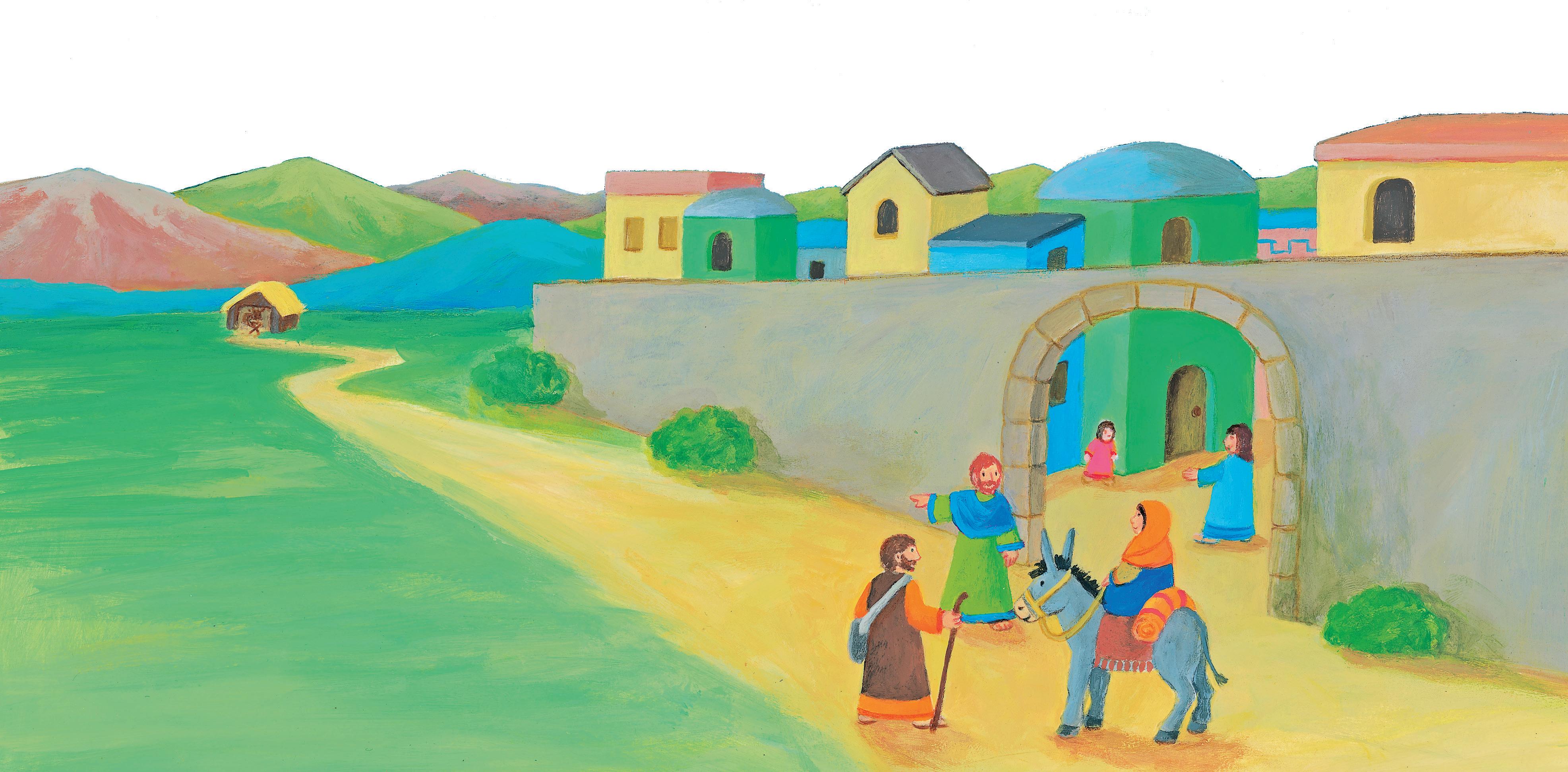 vielen Jahren schickt Gott den Engel Gabriel zu einer jungen Frau aus Nazareth. „Maria, du sollst ein Kind bekommen“, sagt der Engel. „Es wird Gottes Sohn sein.“ Maria fürchtet sich, aber sie vertraut Gott: Alles soll so geschehen, wie Gott es bestimmt hat. Zu dieser Zeit will der römische Kaiser Augustus wissen, wie viele Menschen in seinem großen Reich leben.