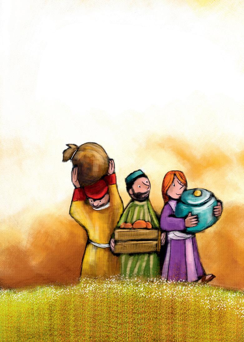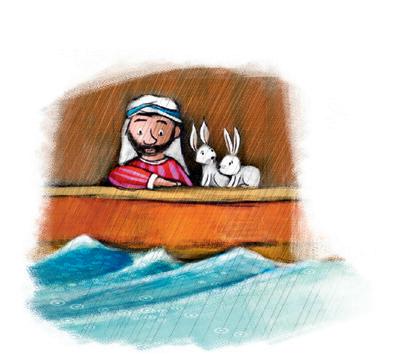 Zuletzt lud Noah Futter für die Tiere ein und genug zu essen für sich und seine Familie. Nun war alles bereit.