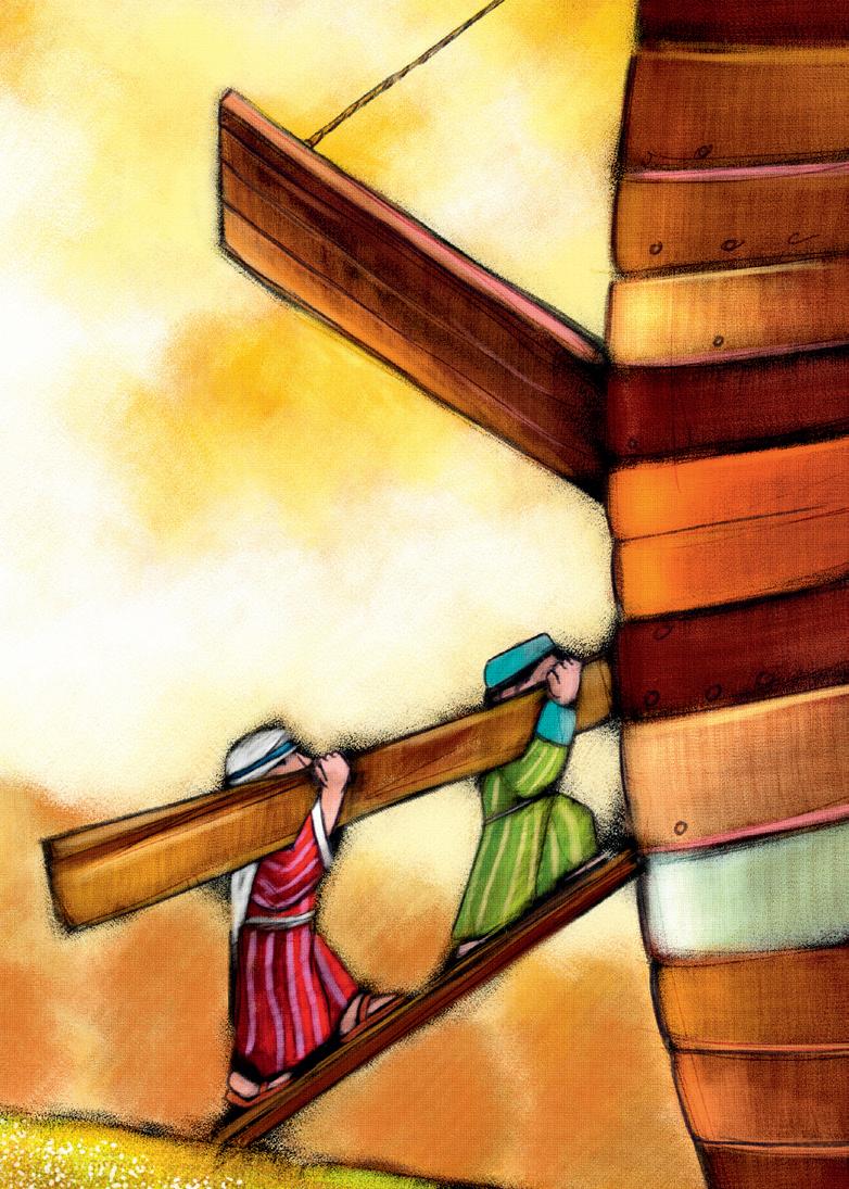 Er nahm festes Holz und baute ein gewaltiges Schiff.