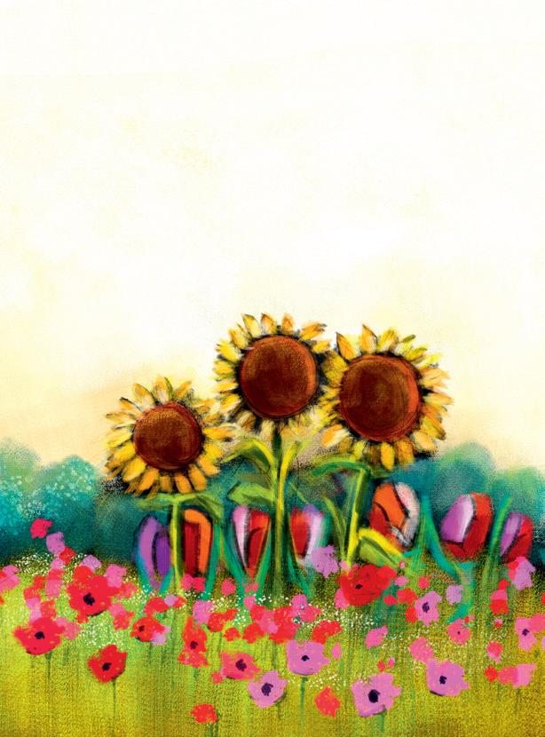 Dann sagte Gott: „Die Erde soll grün werden. Gräser, Blumen und Bäume sollen wachsen. Sie sollen Samen und Früchte tragen.“ So geschah es. Gräser wuchsen aus der Erde. Bunte Blumen blühten auf und verstreuten ihre Samen. Büsche und Bäume erhoben sich über den Wiesen. An ihren Ästen reiften Beeren, Nüsse und süße Früchte. Gott sah alles an: Es war gut. So ging der dritte Tag zu Ende. Es wurde Abend – und wieder Morgen.