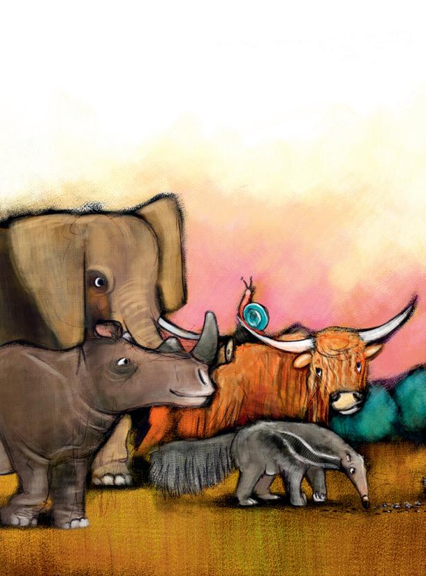 So geschah es. Gott machte alle Tiere, die laufen, kriechen oder krabbeln: Schafe und Kühe, Schlangen und Ameisen, Bären, Löwen und Elefanten.