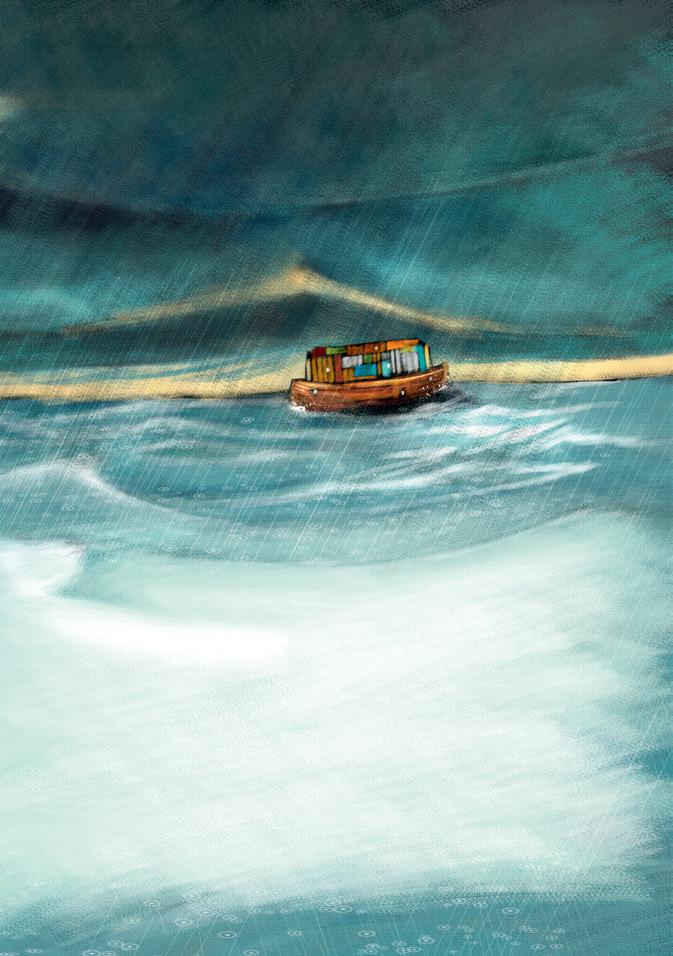 Dann begann es zu regnen. Vierzig Tage lang goss es in Strömen, als hätte der Himmel alle Schleusen geöffnet. Das Wasser stieg und überschwemmte die Erde, bis sogar die höchsten Berge überflutet waren. Aber die Menschen und Tiere in der Arche waren in Sicherheit.