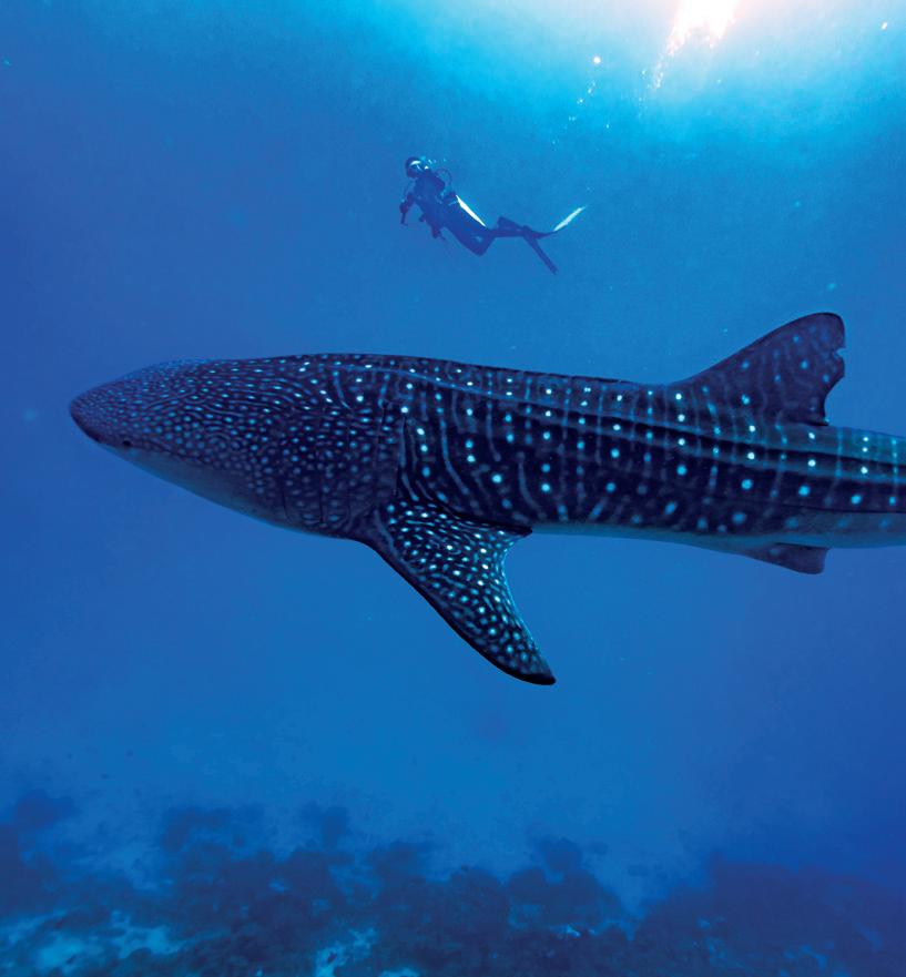 Der Walhai ist der größte Fisch in den Meeren. Weibliche Tiere können bis zu 14,5 m lang werden. Einzelnen Berichten zufolge wurden auch bis zu 18 m lange Exemplare beobachtet. Das Gewicht beträgt bis über 12 Tonnen. Das große Maul erstreckt sich über die gesamte Breite der Schnauze. Die etwa 3600 kleinen Zähne stehen in mehr als 300 dichten Reihen angeordnet. Mit einer Dicke von bis zu 15 cm ist seine Haut die dickste aller Lebewesen der Erde. Walhaie ernähren sich von Kleinstlebewesen und kleinen Fischen, die sie durch Ansaugen des Wassers zu sich nehmen. Sie können bis zu 100 Jahre alt werden.