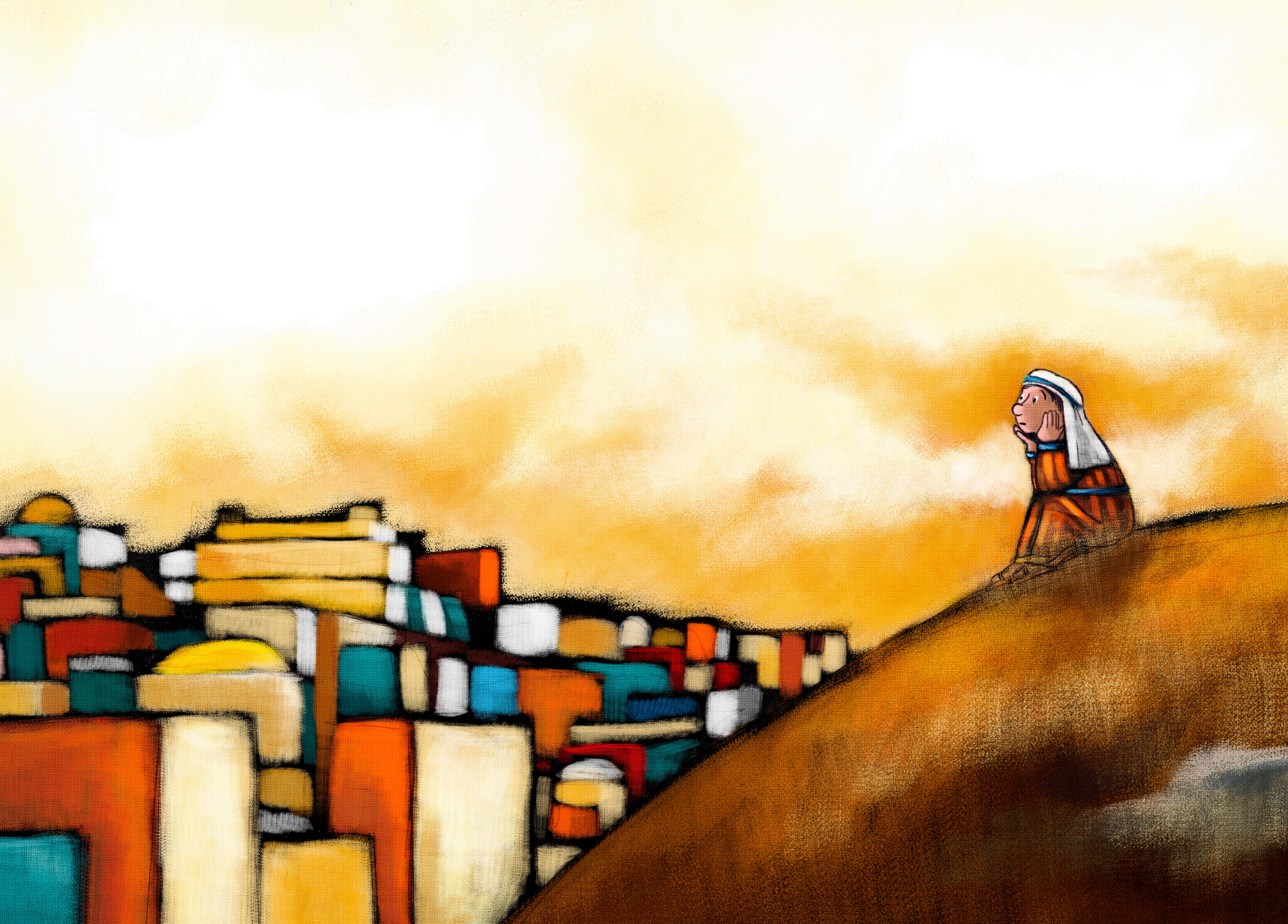 Gott sieht, dass die Menschen in Ninive von den bösen Dingen ablassen. Er hört, dass sie zu ihm beten. Da ändert Gott seinen Entschluss: Ninive soll nicht vernichtet werden.